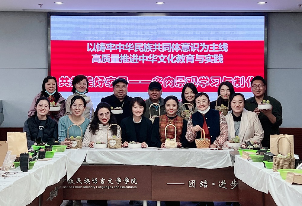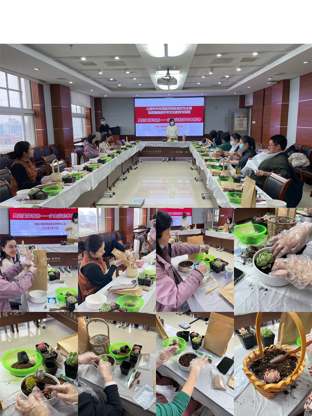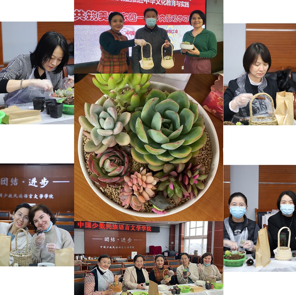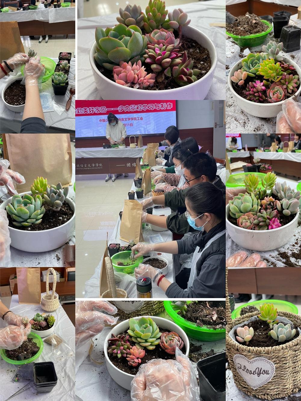 工会按照“以铸牢中华民族共同体意识为主线,高质量推进中华文化教育与实践”学院2022年工作方案,组织举办“共筑美好家园—多肉微景观学习与制作”活动。