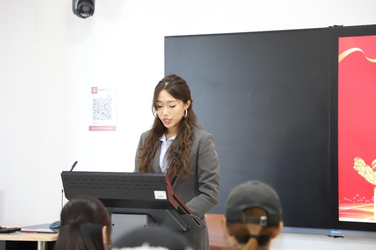 学生会办公室干事申芝瑛领学复信青年汉学家重要精神,领会“汉学源自中国、属于世界,是全人类共同的精神财富”这一重要论断的精神内涵,鼓励同学们发挥专业优势,争当“融通古今中外的文明使者”,在文明互鉴中展现使命担当。学生会宣传部干事艾伊莎则以亲身感悟分享理论学习的心路历程,用鲜活事例诠释理论学习的温度与力量,引发同学们的共鸣。