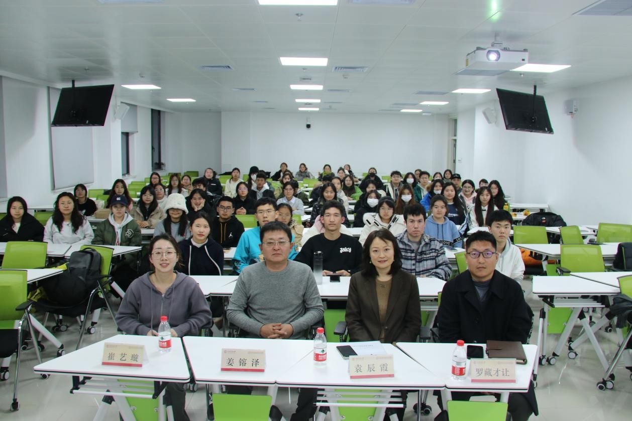 于11月29日晚在丰台校区博文楼308教室举办第五届“爱国·励志·求真·力行”主题讲座之院长、书记专题讲座。学院院长姜镕泽、学院党委书记袁辰霞、专职辅导员罗藏才让等出席本次讲座。本次讲座由学院团委书记崔艺璇主持,2023级全体本科生参加。