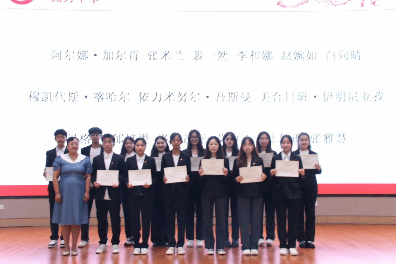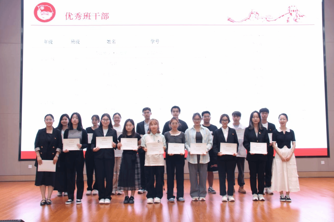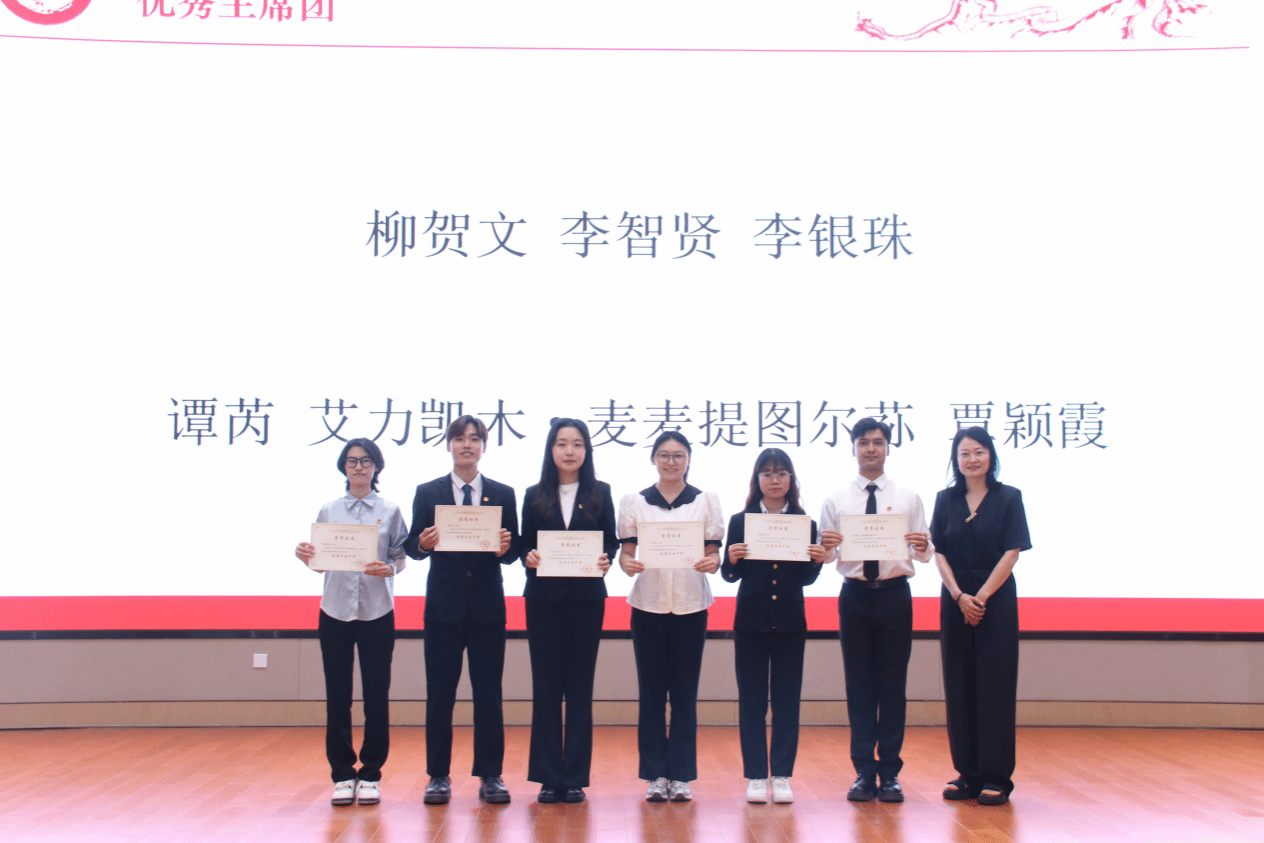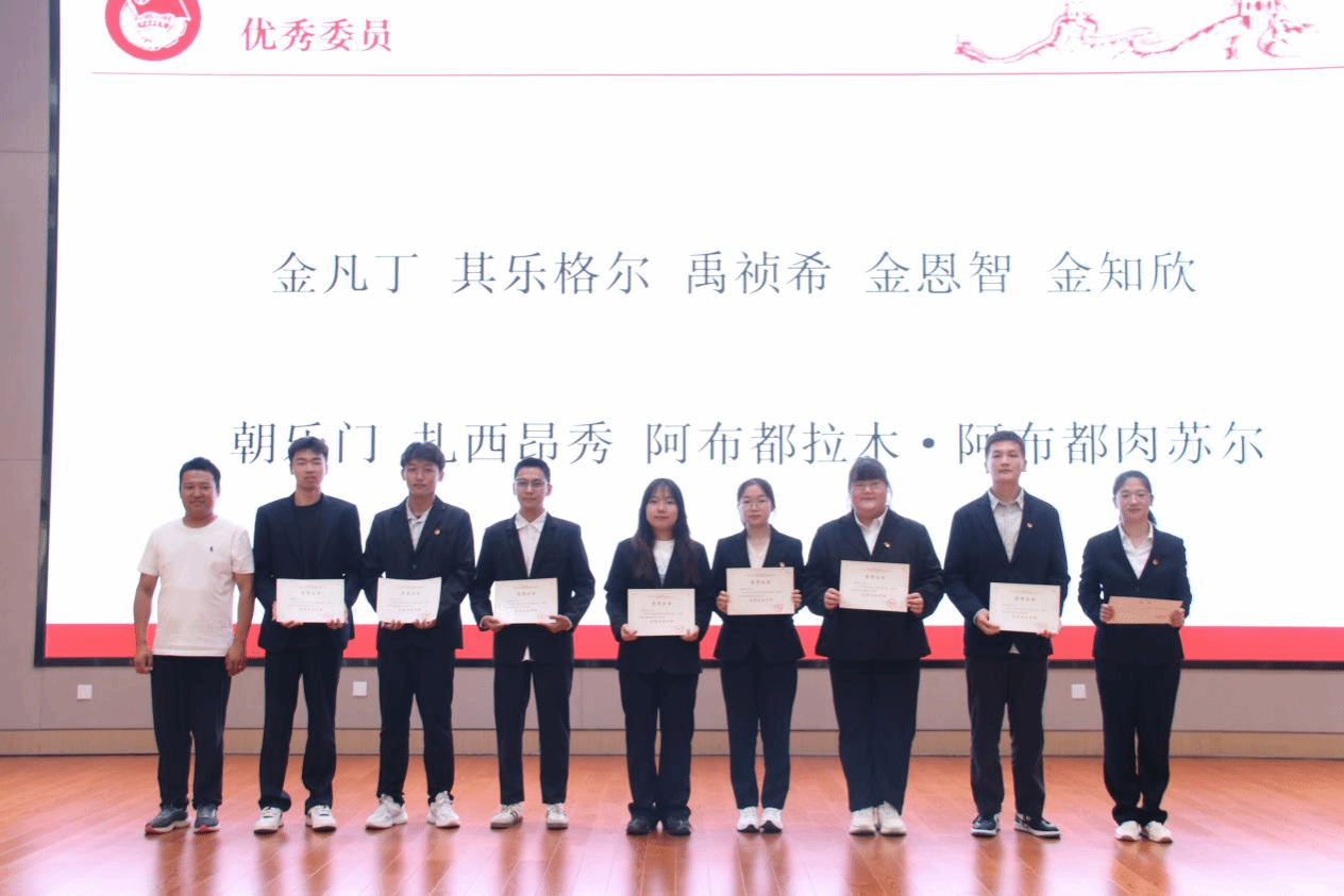 投票结束后学院党团与学生工作办公室主任夏提古丽宣读关于表彰2023—2024学年学院优秀学生干部的决定。学院领导老师为获奖同学颁发荣誉证书。