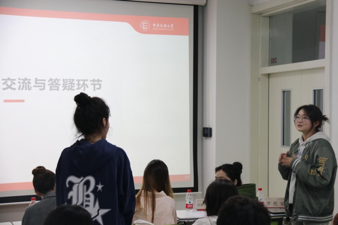古丽孜巴·艾力为大家详细解读了研究生支教团推免政策,通过支教生活的照片和视频,向同学们分享了自己在基层支教一年的点点滴滴,并鼓励大家做好时间管理,在学有余力时积极参加志愿活动和学团组织,积极探索生活的意义。