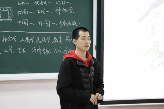 首先,朱云启同学结合自身经历向同学们提出“为什么选择中国少数民族语言文学专业”“为什么而学习”“毕业后想做什么”三个引人深思的问题,引导同学们思考学习和读书的目的,之后通过“学习中国少数民族语言文学专业可以做什么”“中国少数民族语言文学专业可以和什么结合”两大问题,展开主讲内容。以“提问+讲解”的方式,充分调动同学们的“想象力”,分析了中国少数民族语言文学专业与其他学科交流与碰撞的案例,提出中国少数民族语言文学作为一门包容性极强的学科,可以与非常多学科领域建立联系并相互影响。同学们在一问一答中对专业知识认识更加清晰,并了解了今后多种可能的发展方向。