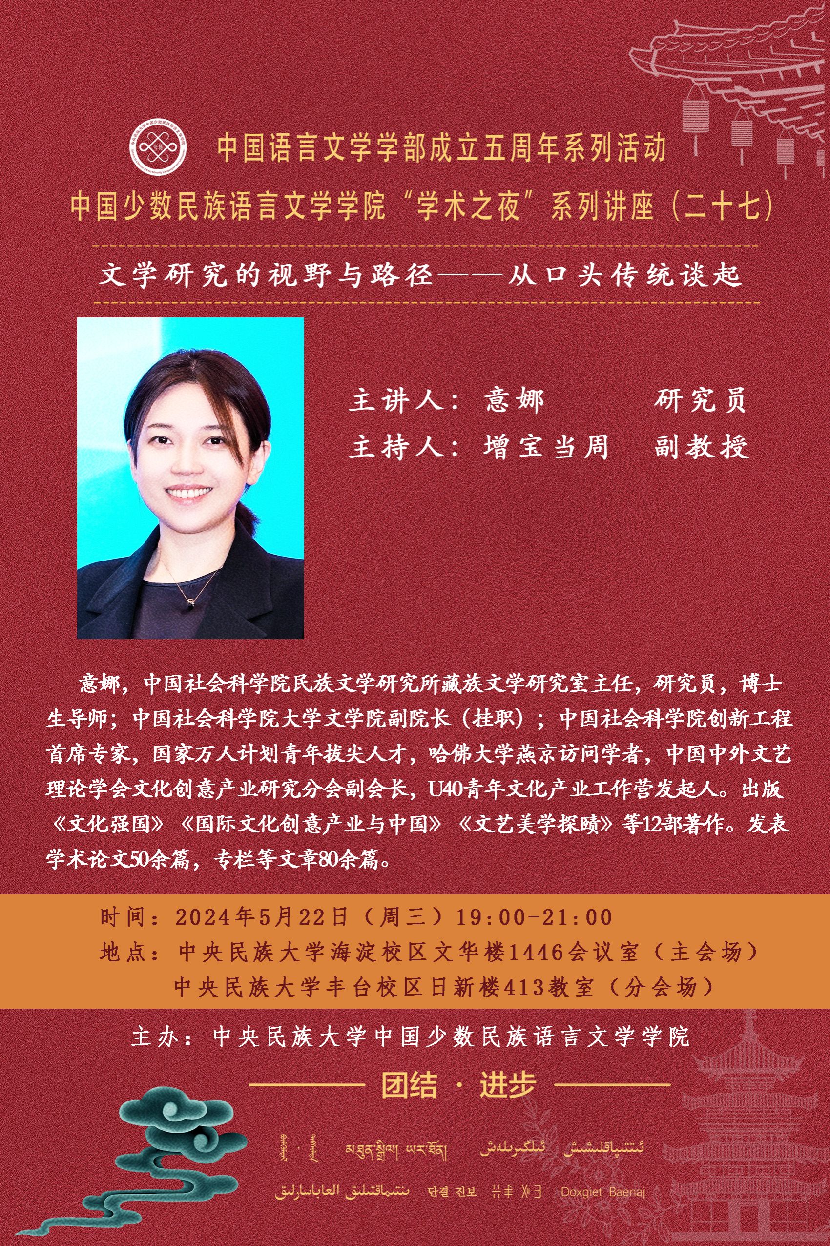 上一条:深夜福利 “学术之夜”系列讲座(二十七) “文学研究的视野与路径——从口头传统谈起”顺利进行 下一条:《罗布桑<宝迪莫日根罕>研究》研讨会在京举行